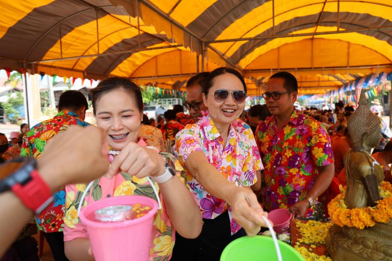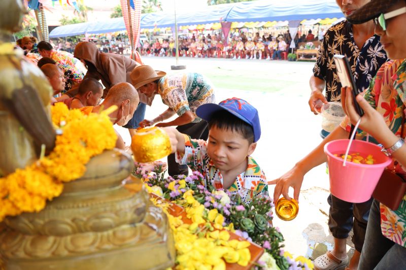 พิธีสิริมงคล ร่วมสรงน้ำพระพุทธรูป สรงน้ำพระสงฆ์ และพิธีรดน้ำขอพรผู้สูงอายุเพื่อความเป็นสิริมงคลในวันปีใหม่ไทย