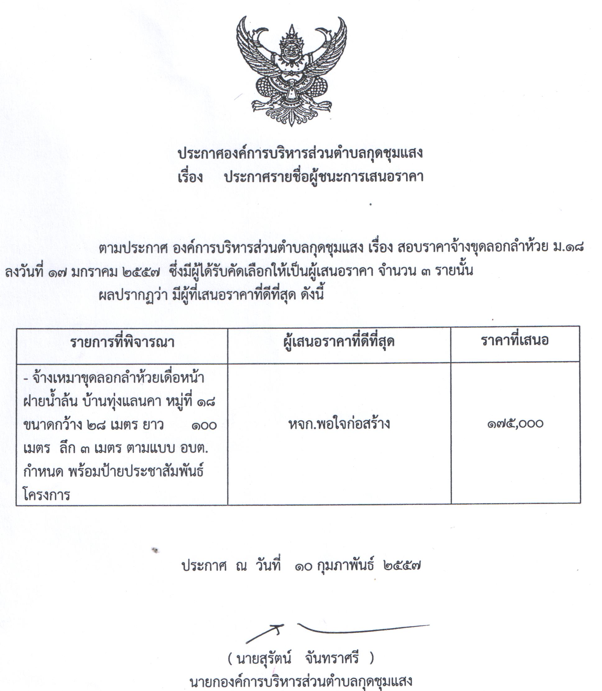 ประกาศรายชื่อผู้ชนะการเสนอราคา