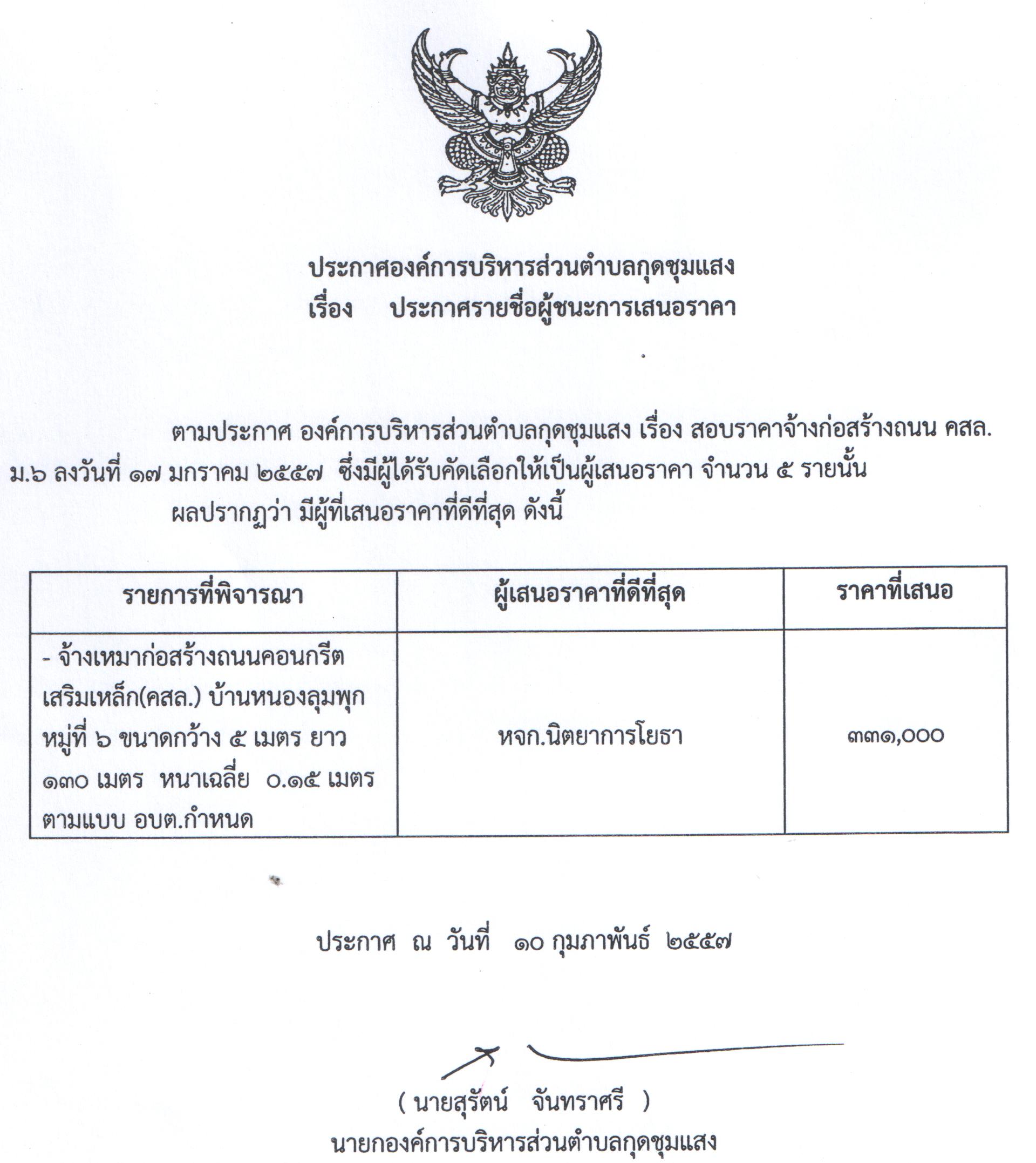 ประกาศรายชื่อผู้ชนะการเสนอราคา