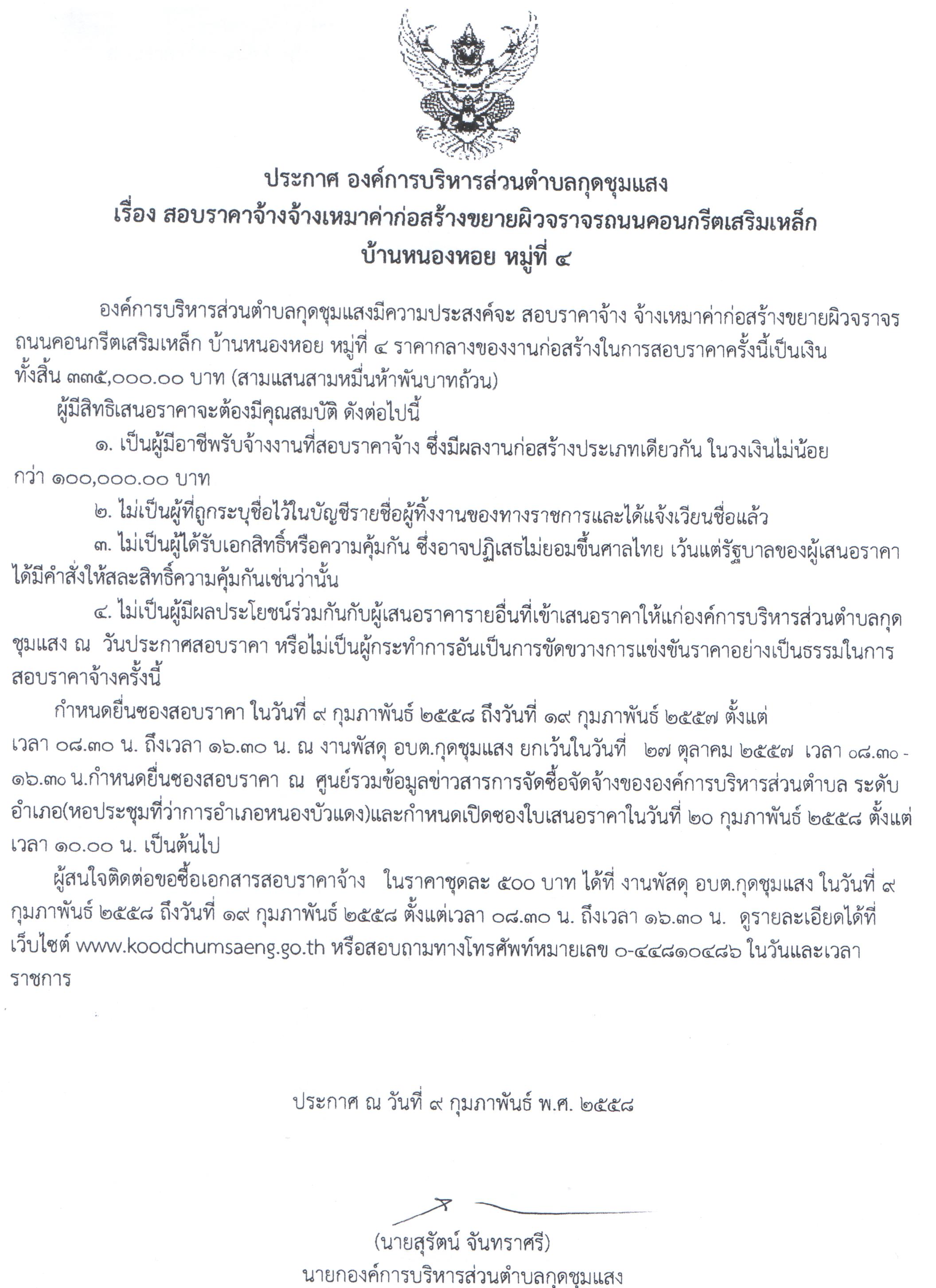 สอบราคาจ้างเหมาค่าก่อสร้างขยายผิวจราจรถนนคอนกรีตเสริมเหล็ก