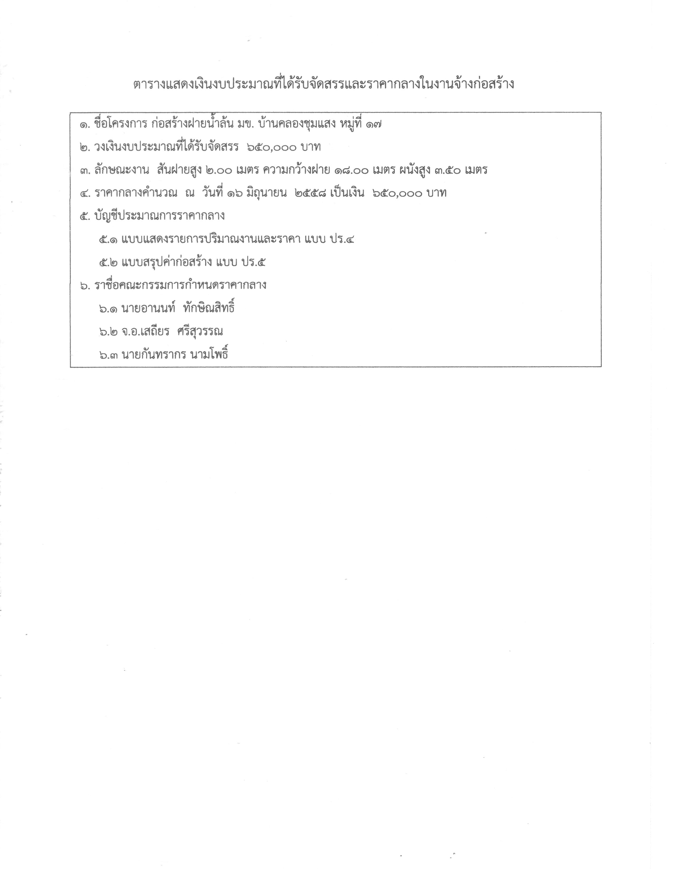 ราคากลางในงานจ้างก่อสร้าง โครงการ ขุดลอกลำห้วยป่าฝิ่น บ.นาสมบูรณ์ ม.8