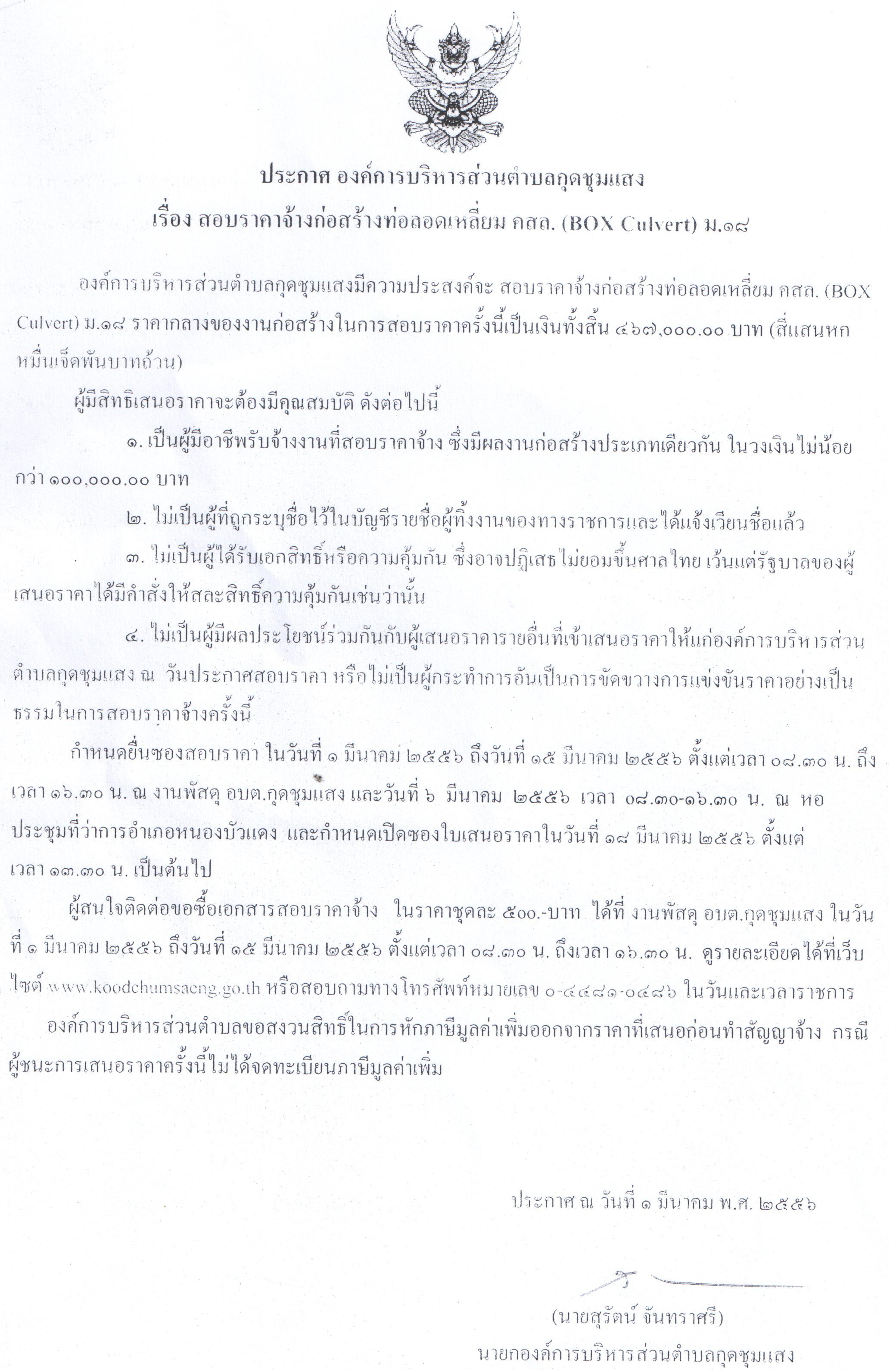 สอบราคาจ้างก่อสร้างท่อลอดเหลี่ยม คสล.(Box Culvert) ม.18