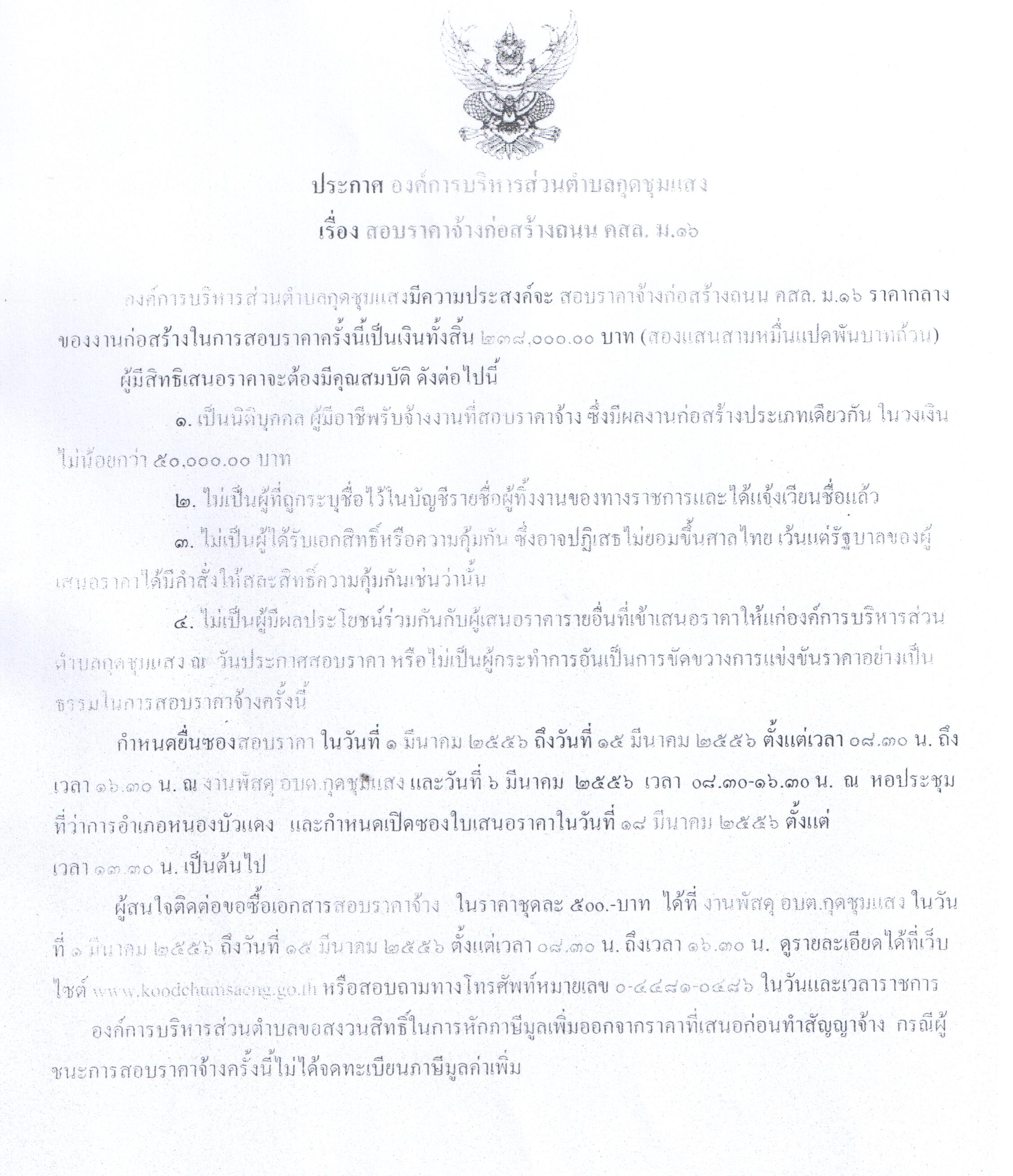 สอบราคาจ้างก่อสร้างถนน คสล.ม.16