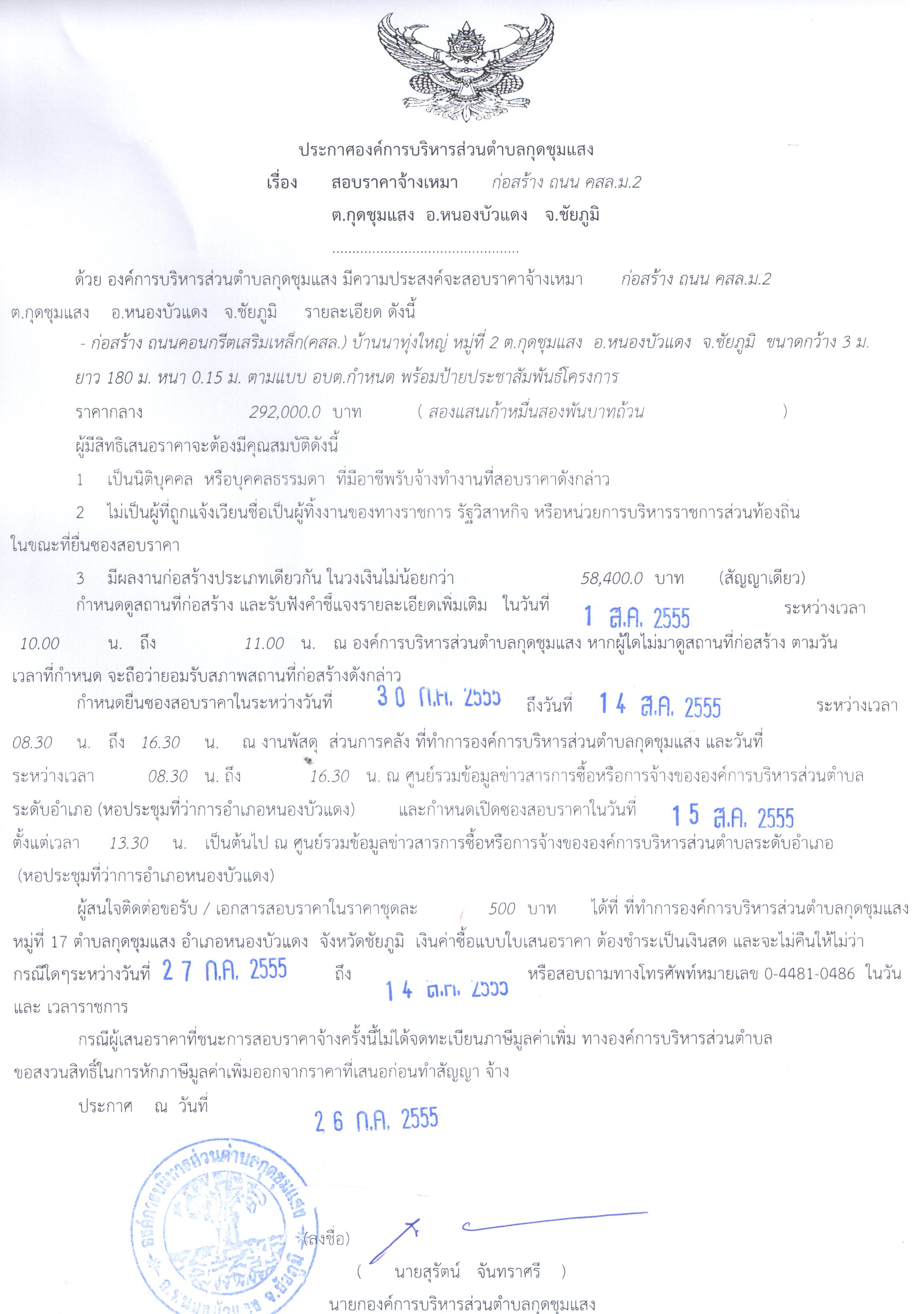 ประกาศ เรื่อง สอบราคาจ้างเหมา ก่อสร้างถนน คสล.หมู่ 5
