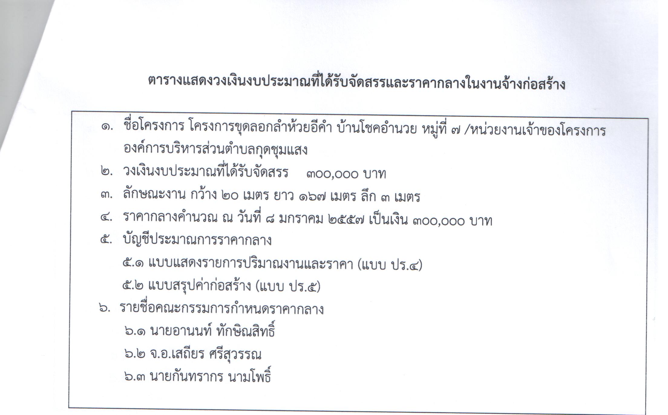 ราคากลางโครงการชุดลอกลำห้วยอีคำ บ.โชคอำนวย ม.7