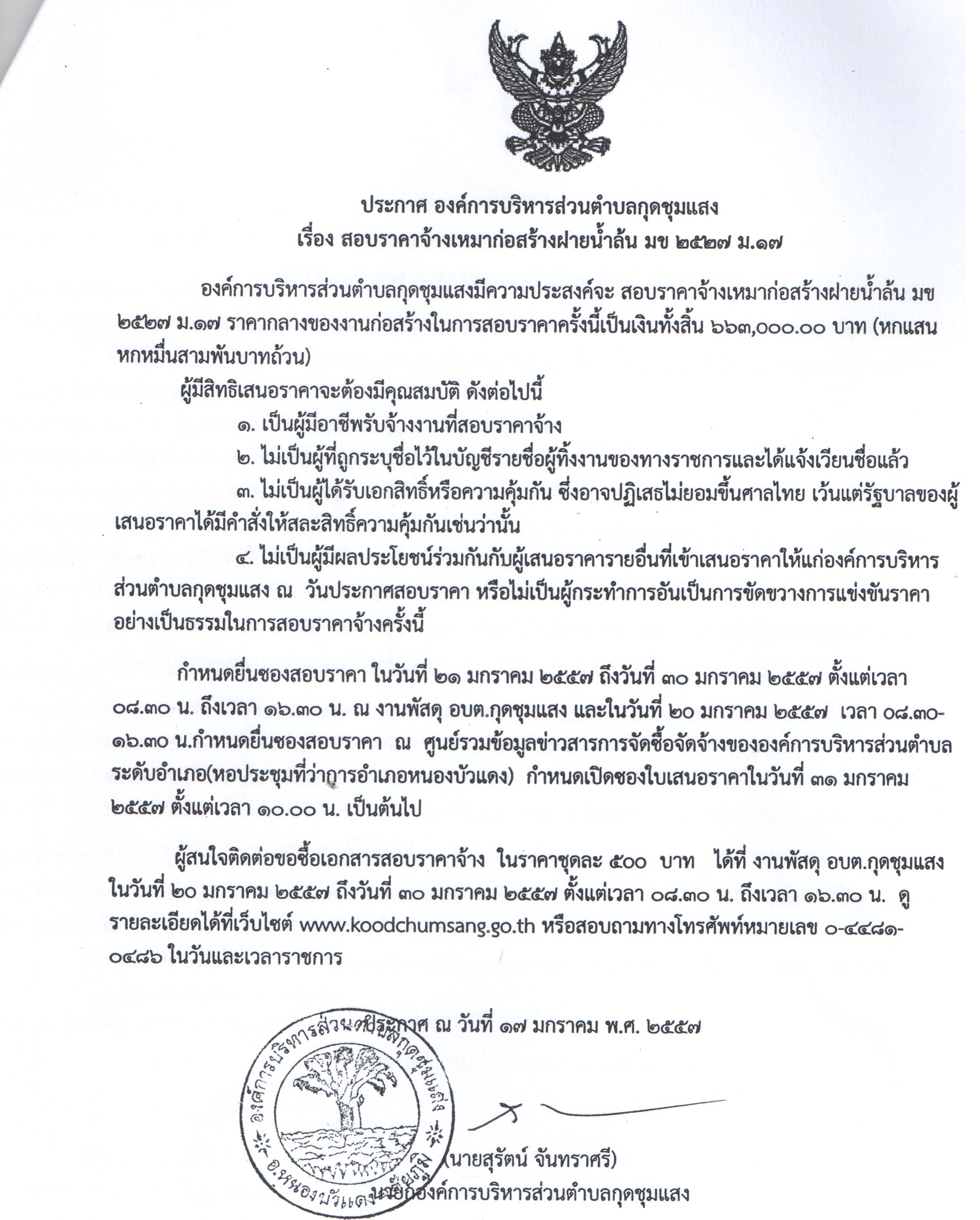 สอบราคาจ้างเหมาก่อสร้างฝายน้ำล้น ม.17