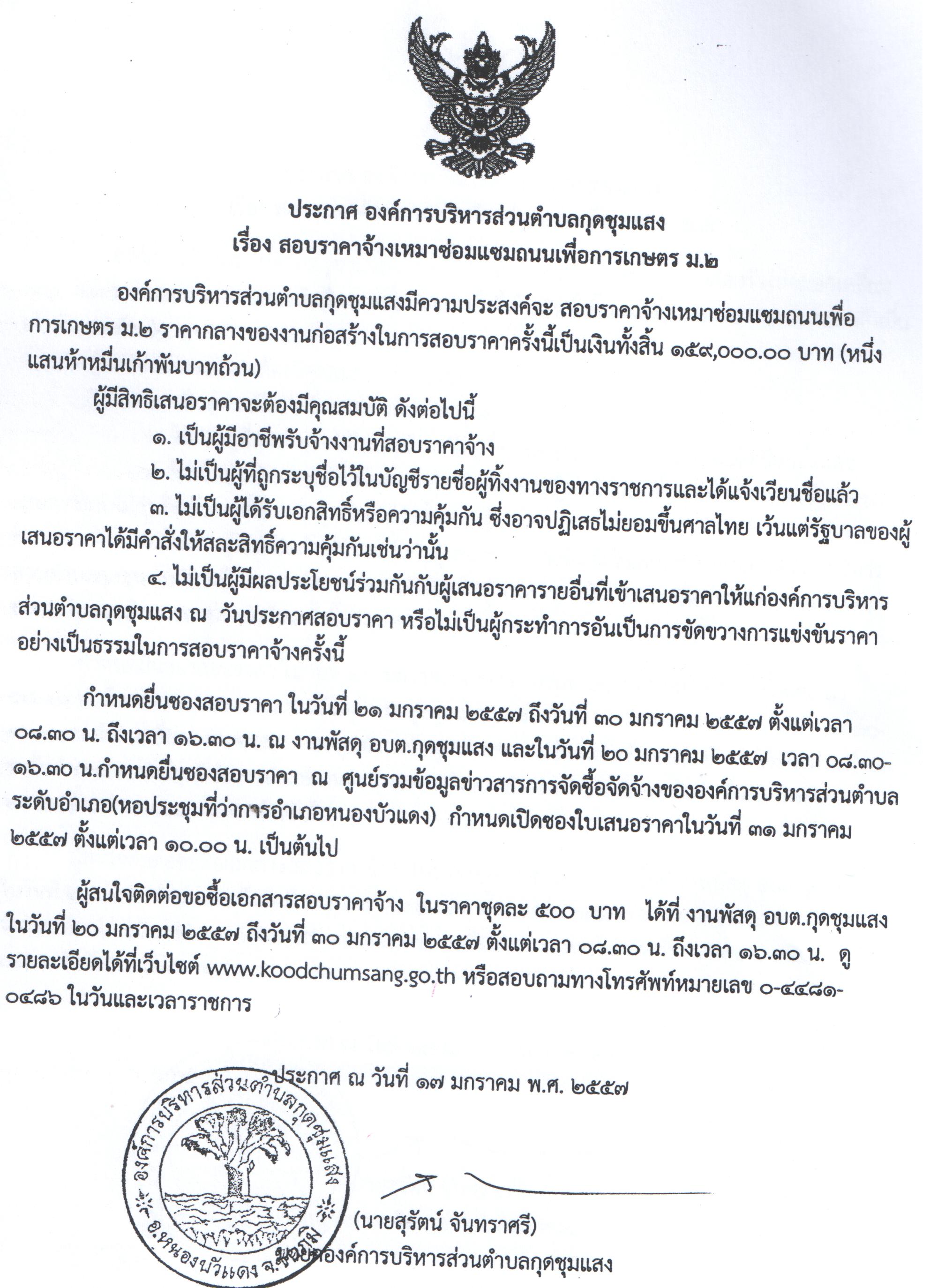 สอบราคาจ้างเหมาซ่อมแซมถนนเพื่อการเกษตร ม.2